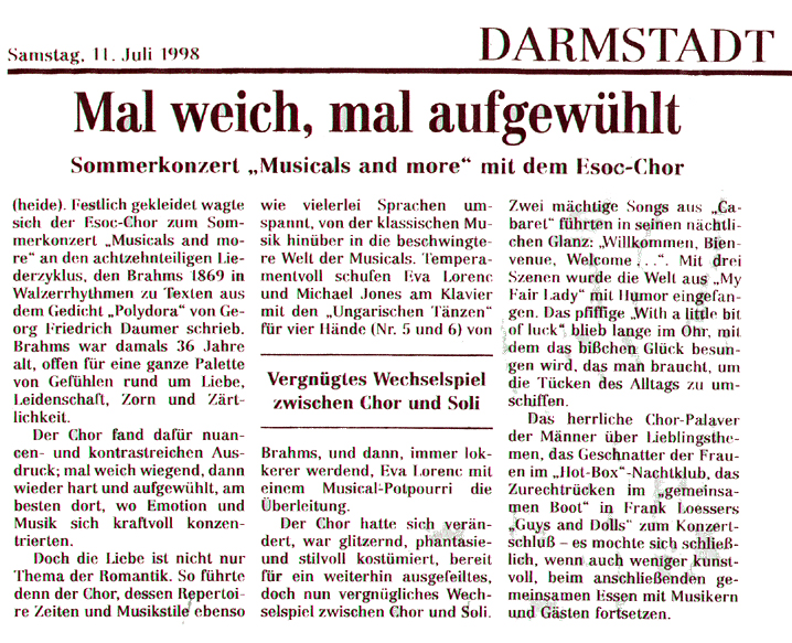 11.07.98 Sommerkonzert "Musicals and more" mit dem ESOC-Chorus